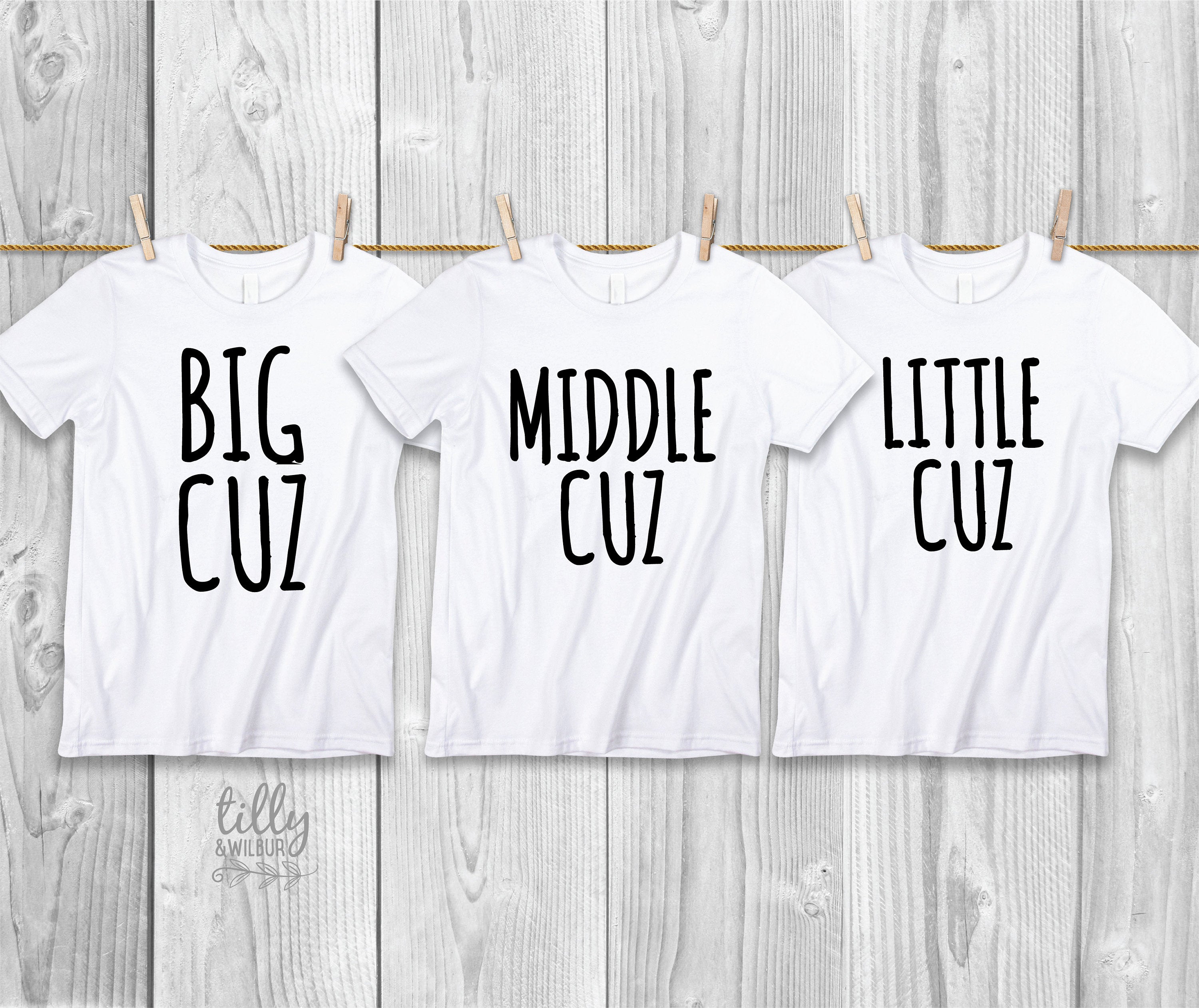 • Big Cuz Middle Cuz Little Cuz Cousin T-Shirt Bodysuit Set